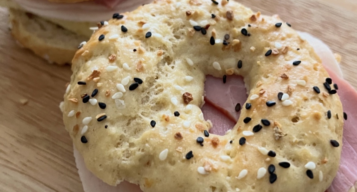 Alt røres sammen og der formes bagels. Sættes på en bageplade med bagepapir. Pensel med et pisket æg og bages i varmluft ovn på 180 grader i 25 minutter. Afkøles inden de skæres over. Kan fryses.