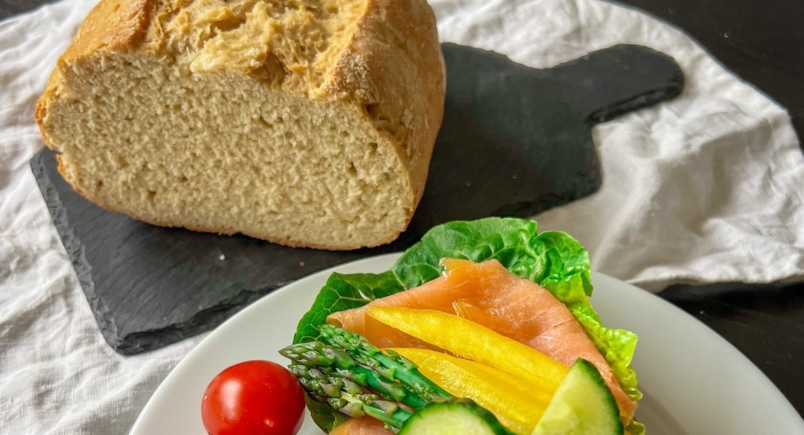 Bland gær og vand i en stor skål og sæt til side. Blend hytteost og æggehvider i en blender eller foodprocessor. Hæld det i skål med gær og bland godt. Tilsæt mel og salt lidt ad gangen og ælt det godt sammen (brug evt håndmixer med dejkroge). Ælt godt med mixer eller med hænderne i ca 5 min. Form en kugle og lad hæve 1 time et varmt sted med klæde over. Ælt igennem og form enten et brød direkte på bagepapir eller kom dej i en smurt brødform. Efterhæves 20 min imens ovn varmes til 200 grader. Skær en rille gennem brødet med en skarp kniv og bag 35-40 min indtil det lyder hult, når du banker på det. Lad afkøle og skæres i skiver. Kan fryses og tages op og ristes på brødrister.